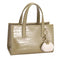 This luxurious handbag features premium crocodile-embossed leather in an elegant golden champagne tone. The structured rectangular design offers ample space while maintaining sophisticated style. Dual top handles provide comfortable carrying, while the decorative fluffy pom-pom charm adds a playful touch. The glossy finish and metal hardware details enhance its premium appeal, making it perfect for both professional and casual occasions. The versatile golden color complements various outfits, establishing this as an essential fashion accessory for the modern woman.