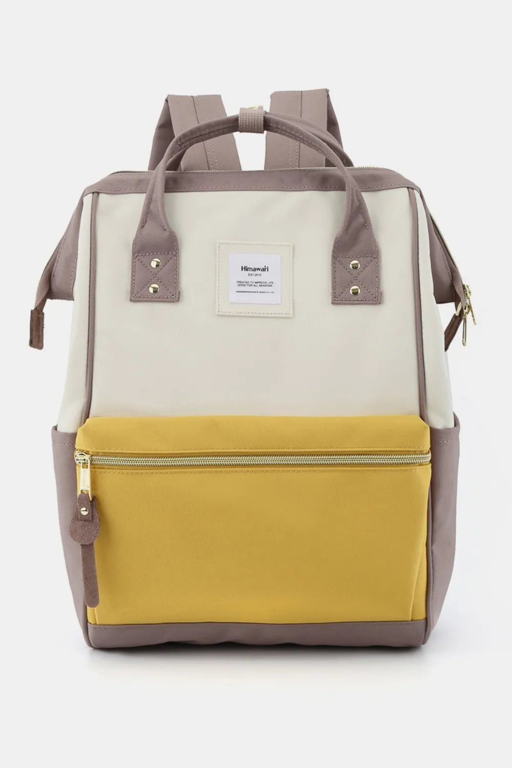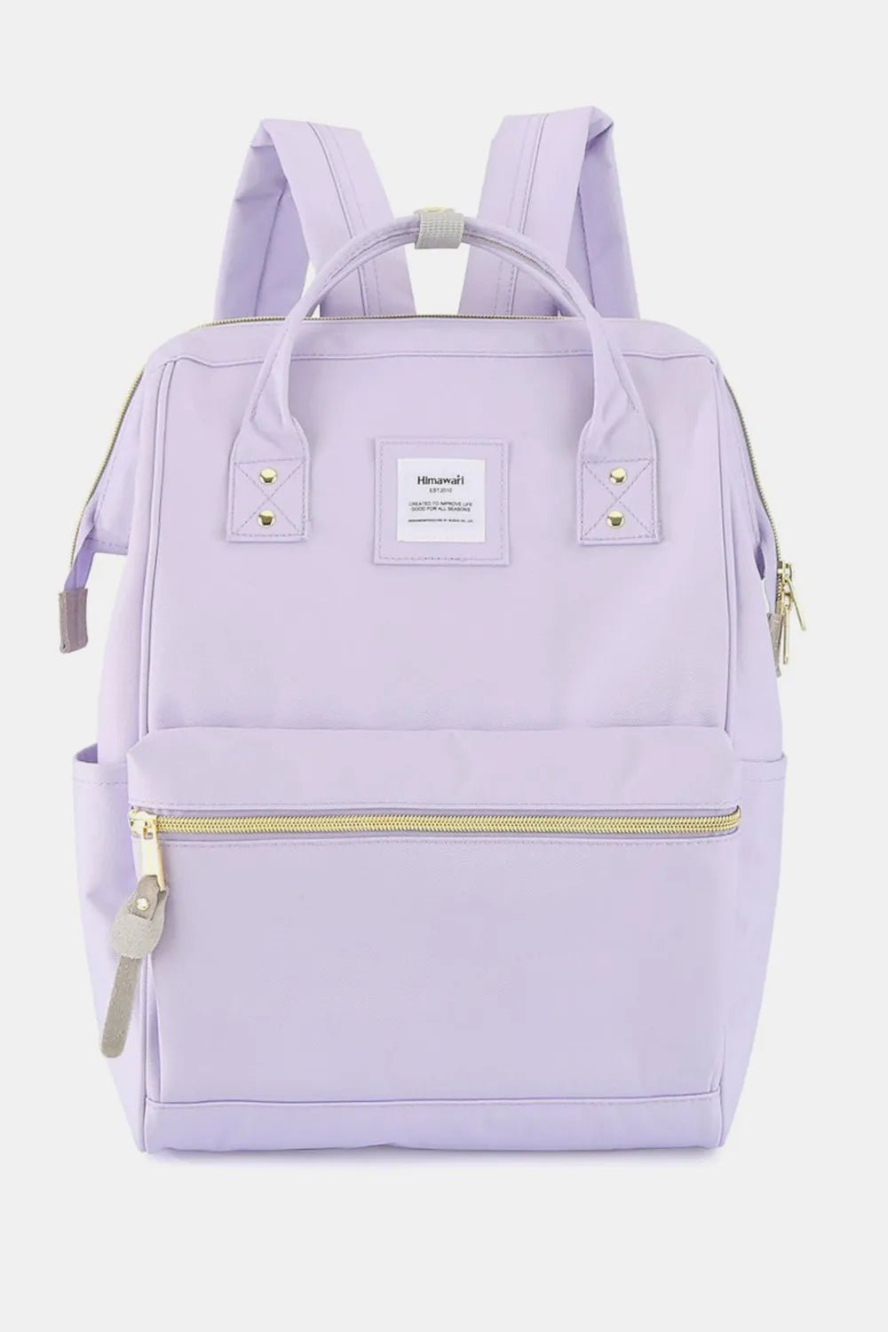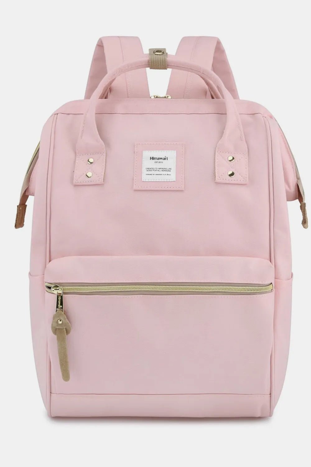 This Himawari Waterproof Canvas Backpack combines functionality with modern aesthetics, featuring a distinctive color-blocked design in soft pink and navy blue tones. Crafted from premium waterproof canvas material, it offers superior protection against weather elements while maintaining a lightweight profile. The spacious main compartment opens wide for easy access, complemented by strategically placed side pockets for organized storage of essentials. Reinforced with durable metal hardware and smooth-operating zippers, this backpack delivers long-lasting performance. The adjustable padded shoulder straps and top handle provide comfortable carrying options for daily commutes, travel, or outdoor activities. Its thoughtful design balances style and practicality, making it perfect for students, professionals, and adventure enthusiasts seeking a reliable and fashionable backpack solution.